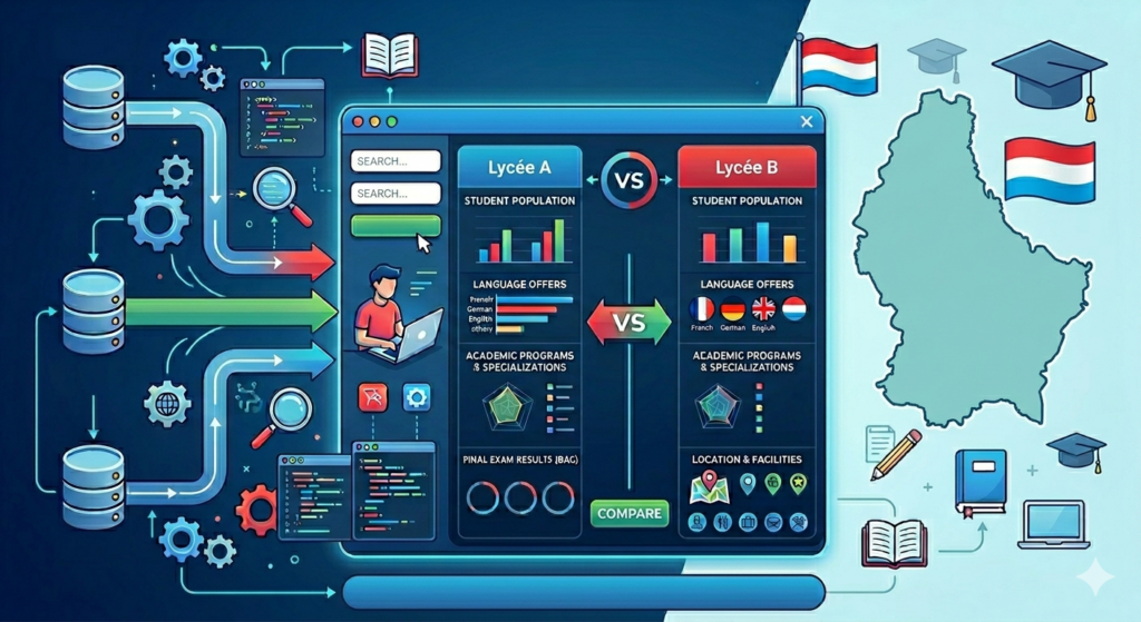 One of the things that looms big on our horizon is the secondary school choice for my older son. The Luxembourgish system seems to force (offer?) plenty of choices: technical vs classical track, international education vs national, private vs public… I’m an engineer, and the core reflex as an engineer is: “measure first” — so I wanted to find ways to compare all these options.